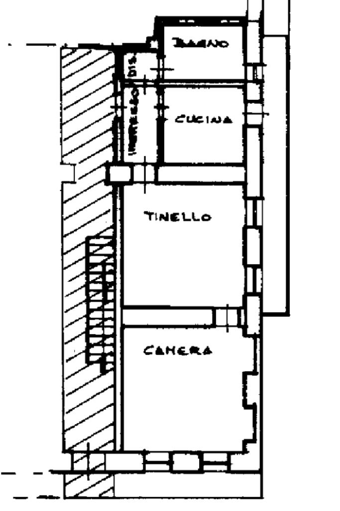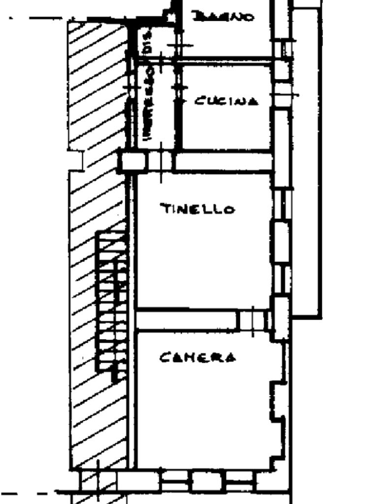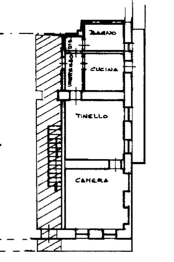 L’immobile è così composto: ingresso su soggiorno, cucina con balcone, camera matrimoniale, disimpegno e bagno con doccia.