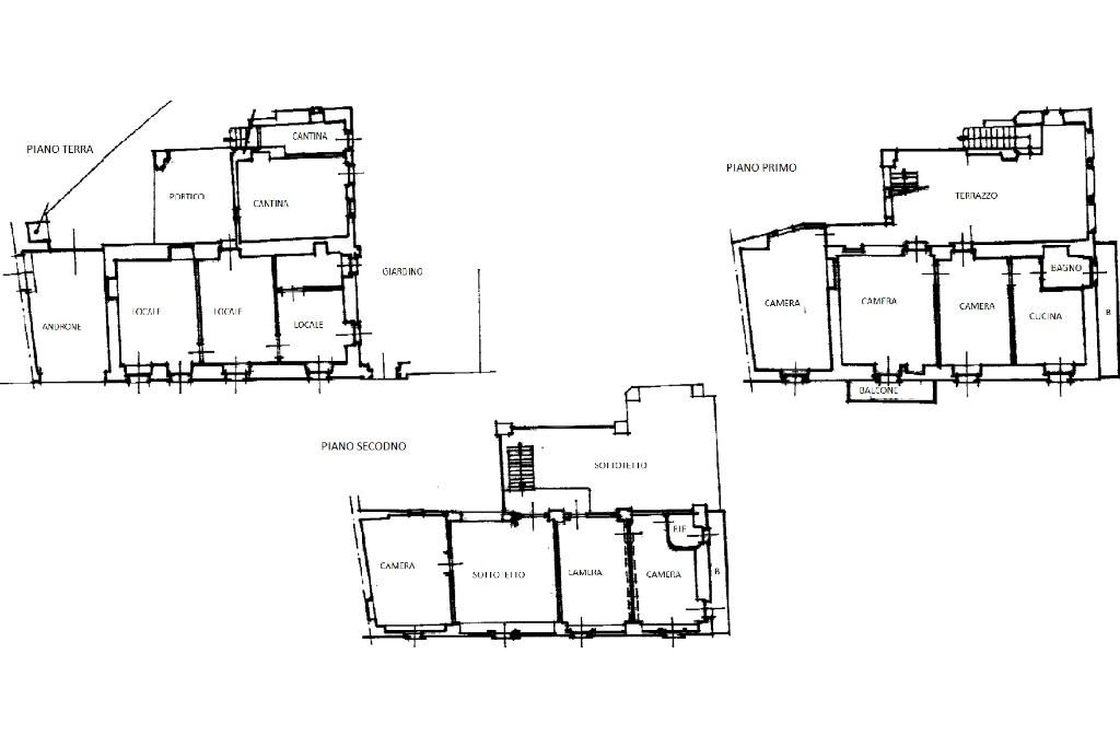 L’immobile, di circa 140 mq, è posto su tre livelli. Al piano terra, sono presenti cantine e locali da adibire a proprio piacimento. Al piano primo, raggiungibile da scala esterna, un ampio terrazzo e ulteriori locali. Al piano secondo, sottotetto e due vani.