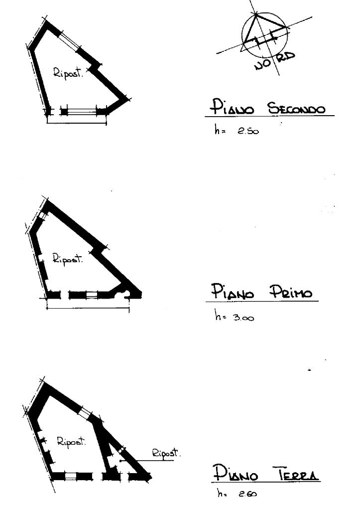 L'immobile è posto su tre livelli; al piano terra soggiorno e bagno. Al piano primo, raggiungibile da scala esterna, soggiorno e angolo cottura in ambiente unico e balcone. Al piano secondo, accessibile da scala interna, camera matrimoniale con balcone e bagno con doccia.
