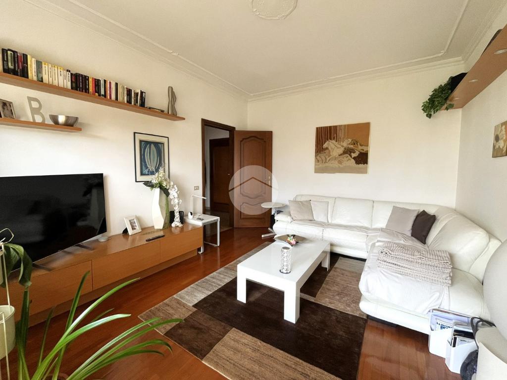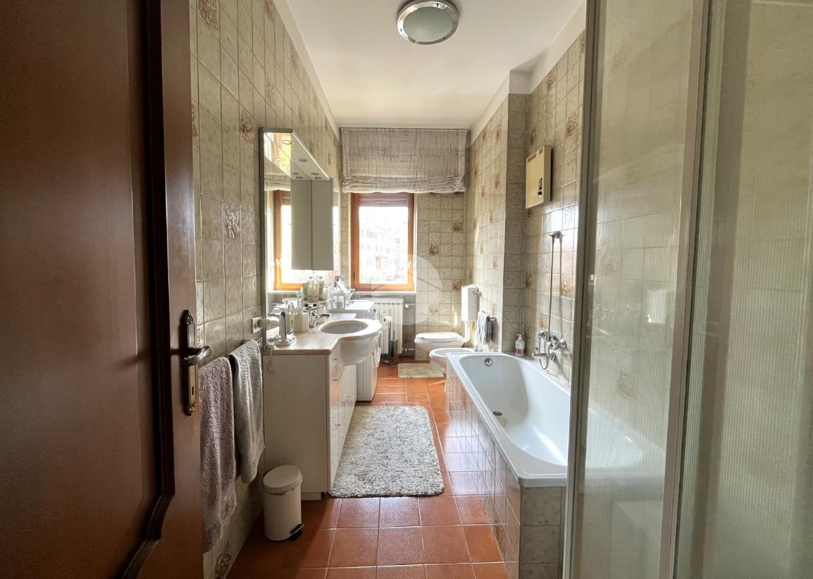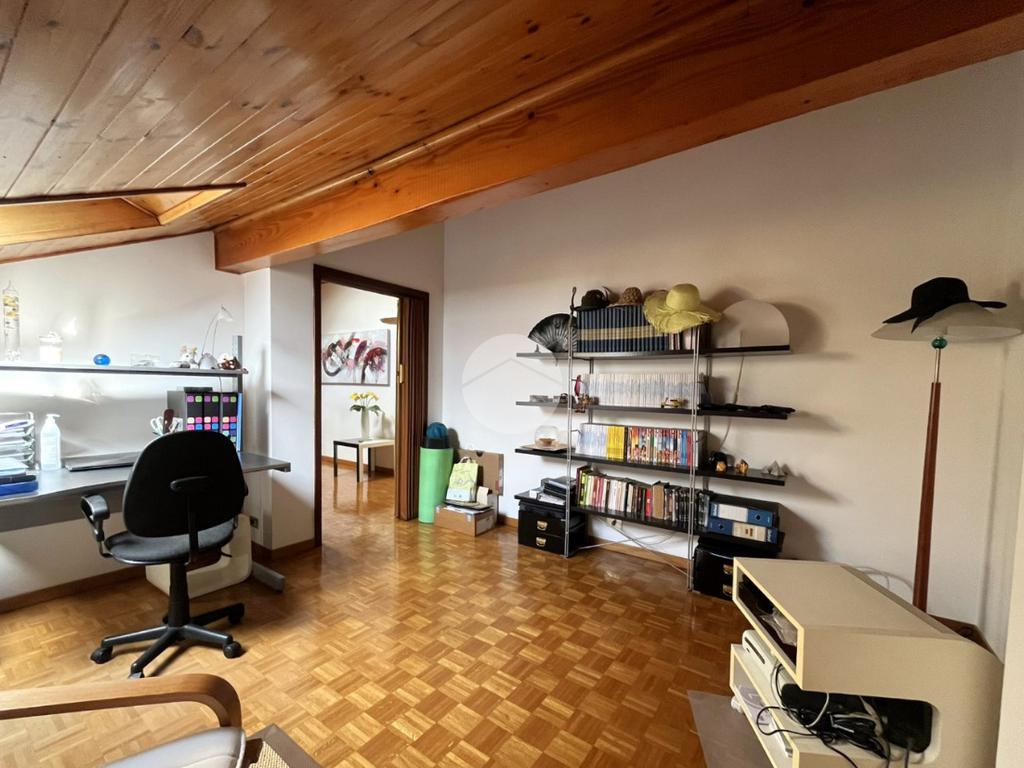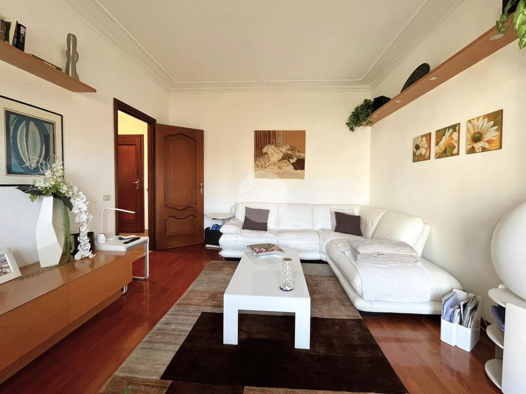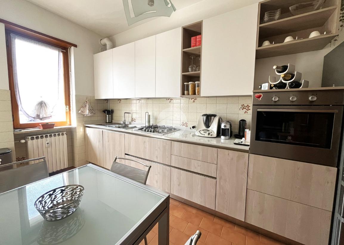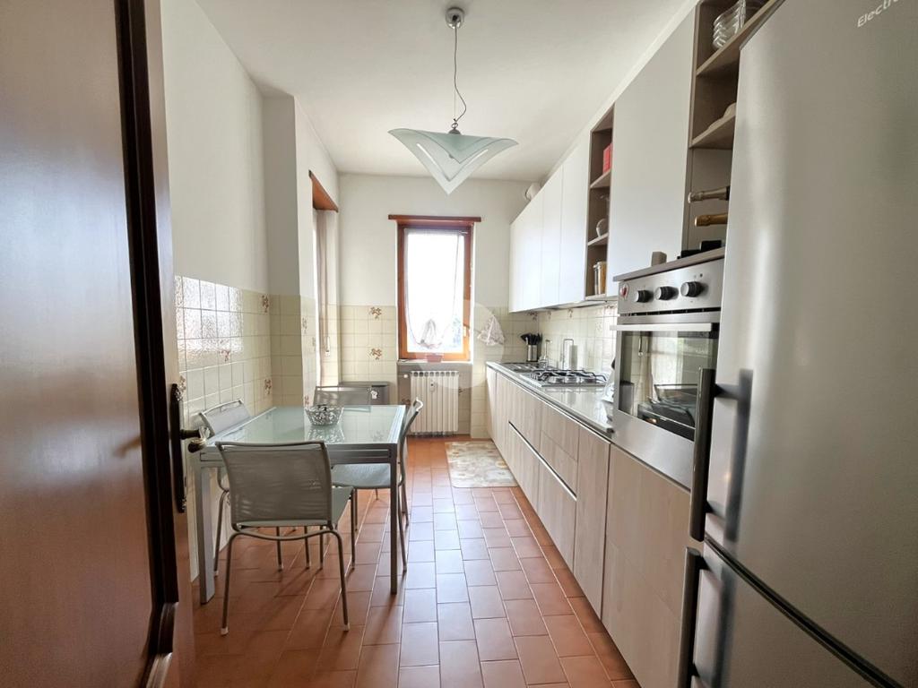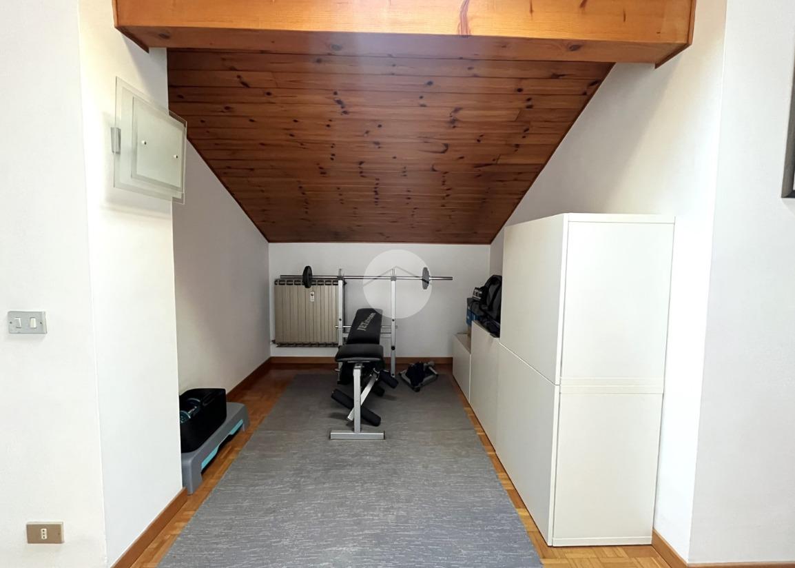 L'immobile, di circa 100 mq calpestabili, è posto su due livelli: il piano principale (piano secondo della palazzina) è composto da ingresso, cucina abitabile, ampio soggiorno, camera matrimoniale, bagno con doccia e vasca, due balconi e disimpegno con scala a chiocciola che porta al piano mansardato. Al piano superiore, un bagno di servizio, e due camere.