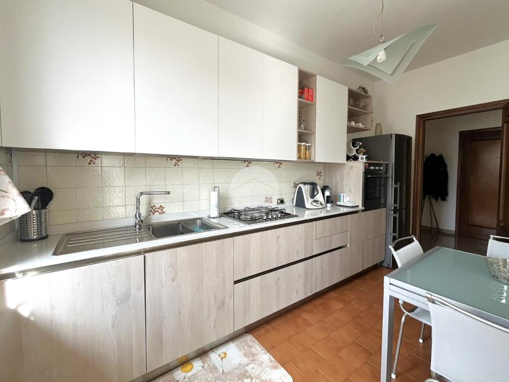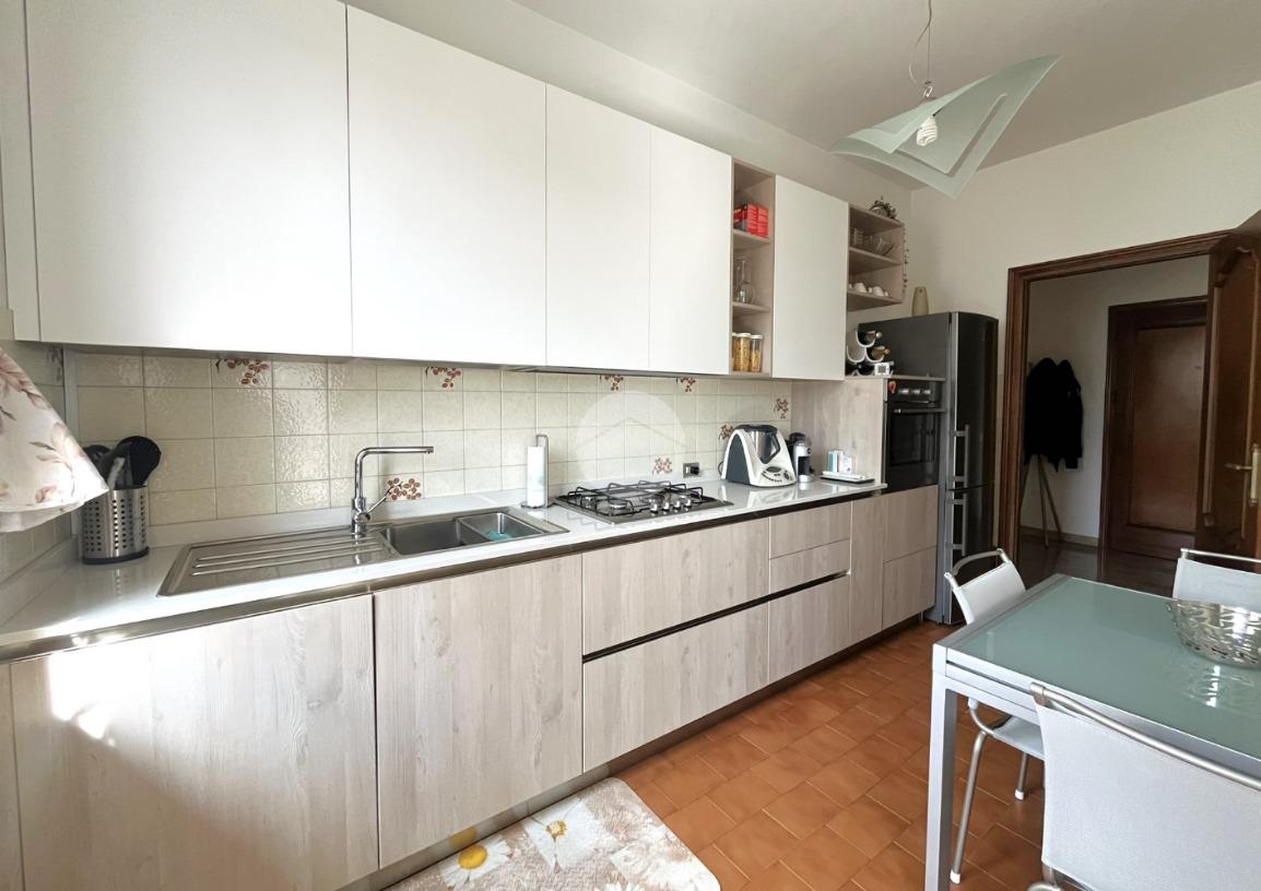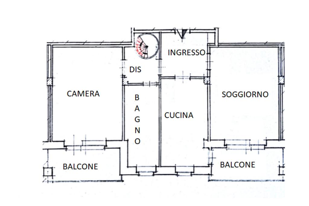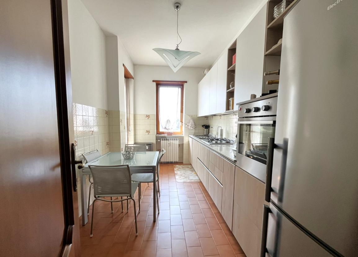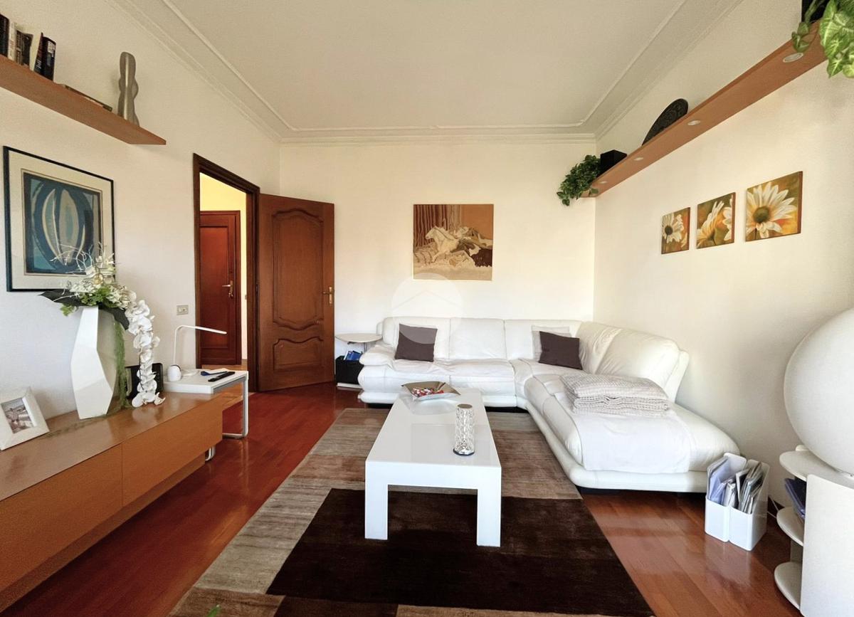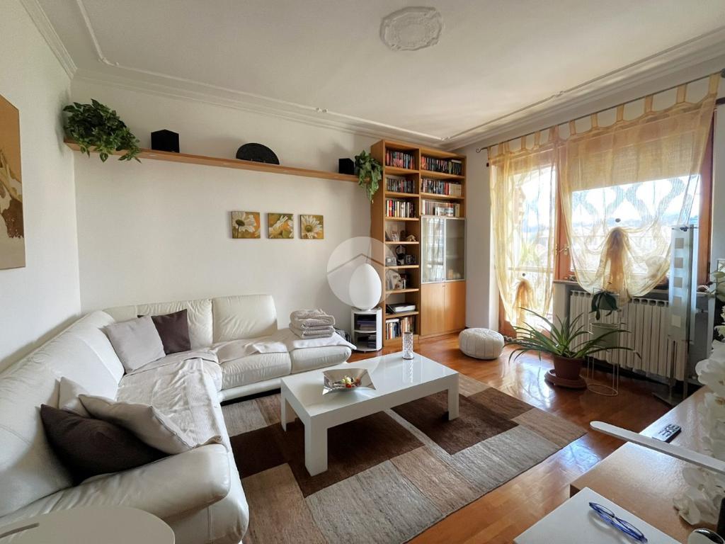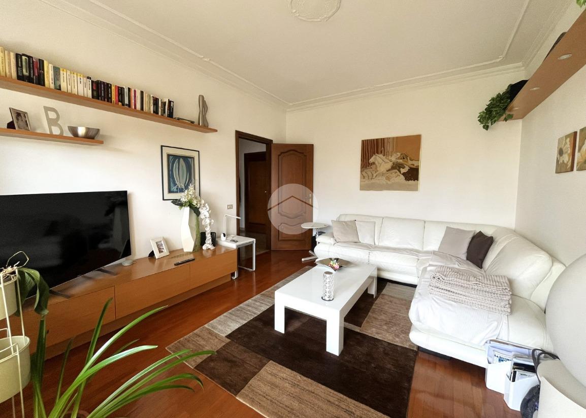 L'immobile, di circa 100 mq calpestabili, è posto su due livelli: il piano principale (piano secondo della palazzina) è composto da ingresso, cucina abitabile, ampio soggiorno, camera matrimoniale, bagno con doccia e vasca, due balconi e disimpegno con scala a chiocciola che porta al piano mansardato. Al piano superiore, un bagno di servizio, e due camere.