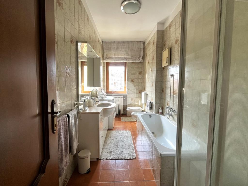 Il riscaldamento è centralizzato a radiatori con termovalvole, incluso nelle spese condominiali di circa 1800 €/annui. Boiler a gas per acqua calda e fornello. Gli infissi sono in legno con vetro singolo.