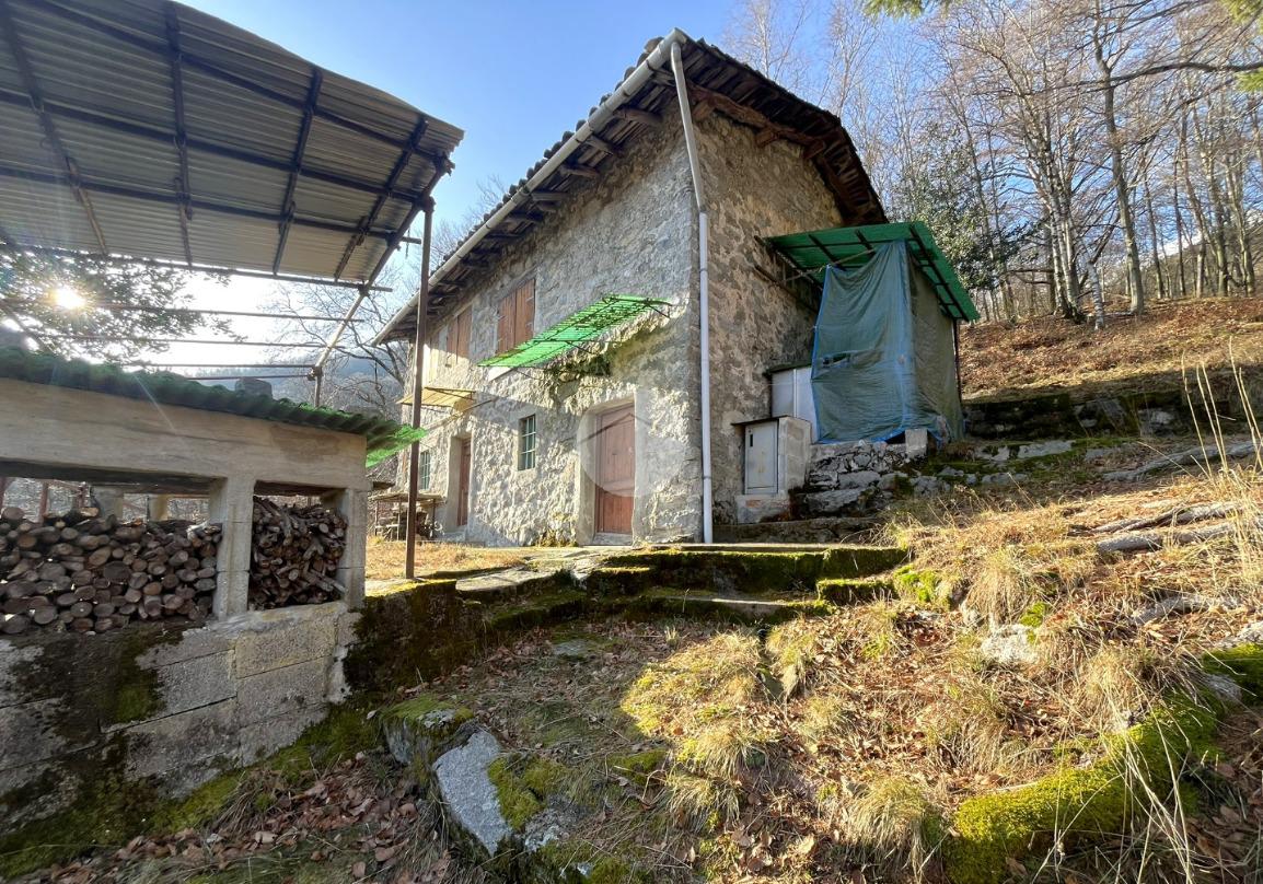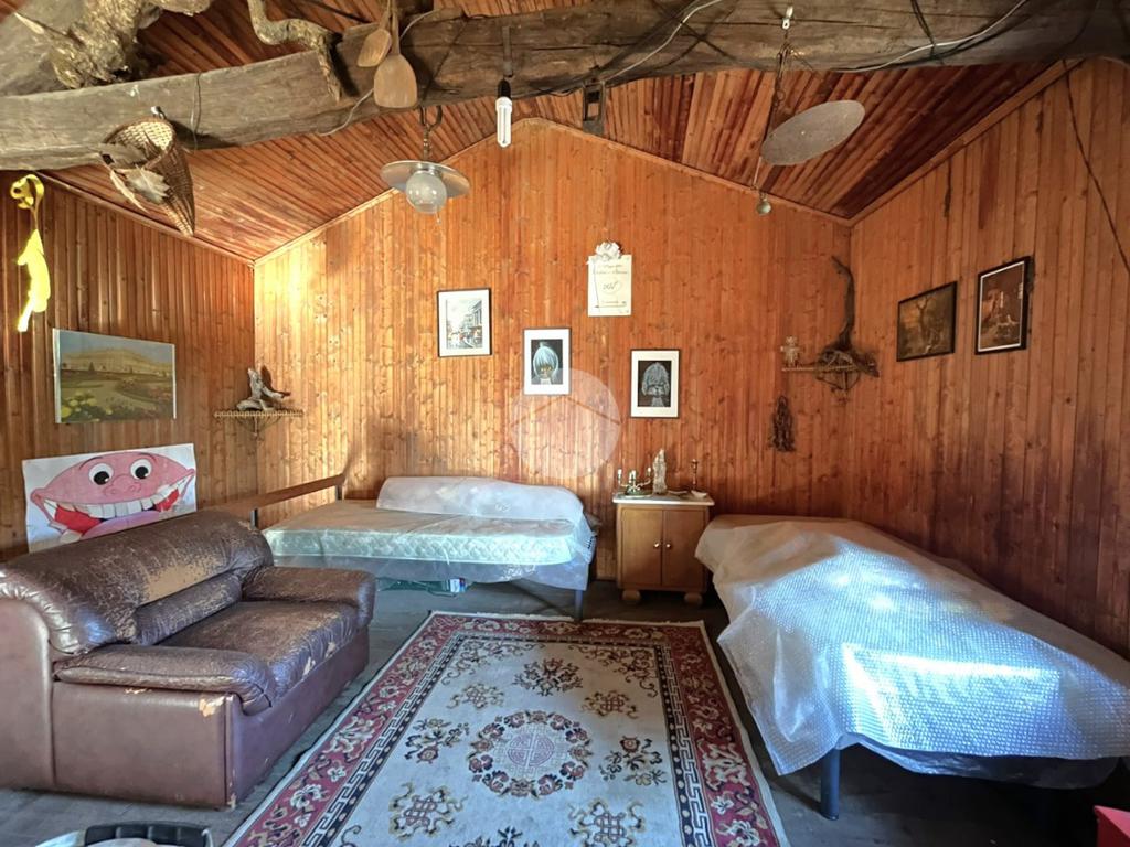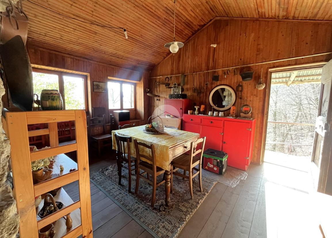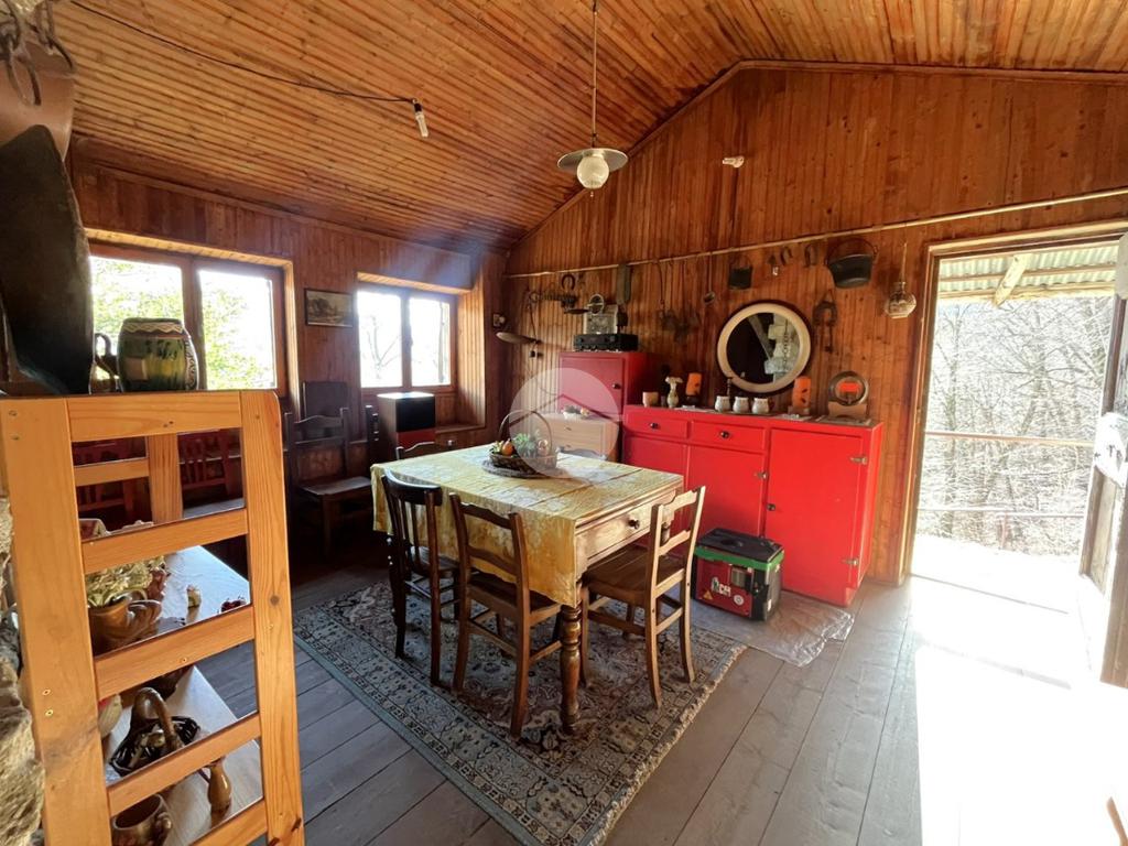 A completare la proprietà un WC esterno, con pozzo a perdere, una legnaia, un ripostiglio ed il terreno, in parte scosceso e in parte pianeggiante, di circa 6560 mq.