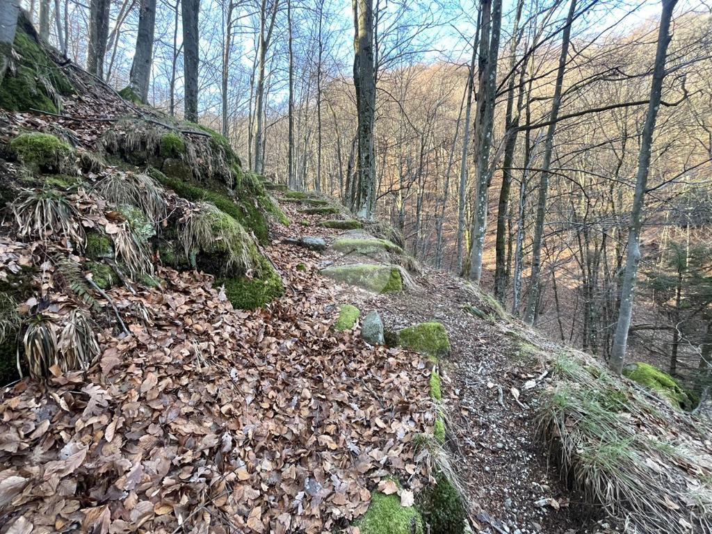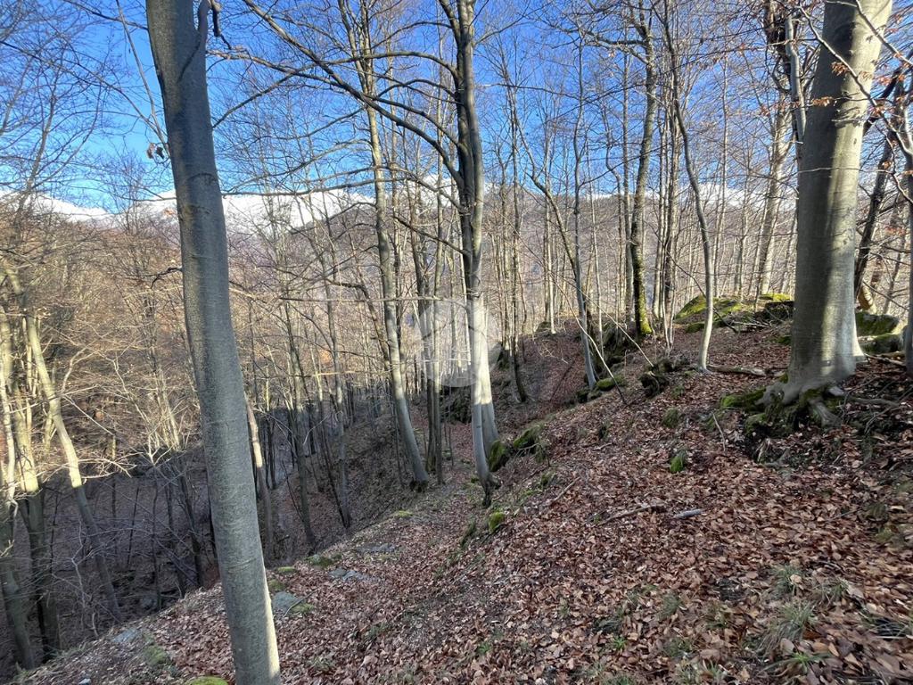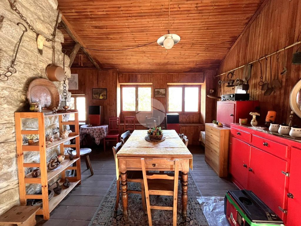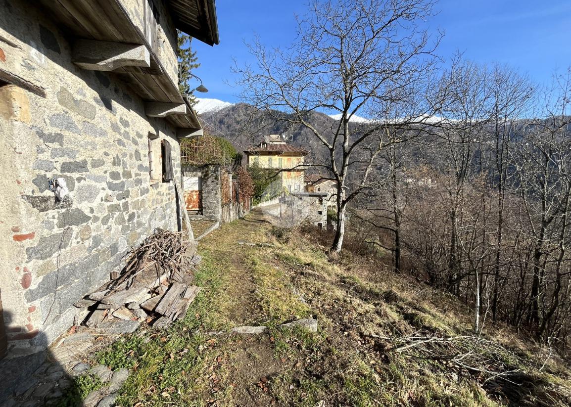 A completare la proprietà un WC esterno, con pozzo a perdere, una legnaia, un ripostiglio ed il terreno, in parte scosceso e in parte pianeggiante, di circa 6560 mq.