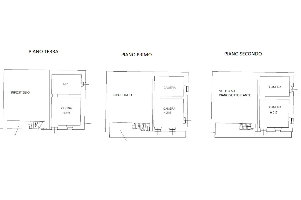 L’immobile ha una superficie di circa 150 mq ed è accatastato come abitazione (categoria A/4) ed è così formato: al piano terra cucina e due ripostigli. Il piano primo, accessibile da scala esterna, due camere e un ripostiglio. Al piano secondo due camere.