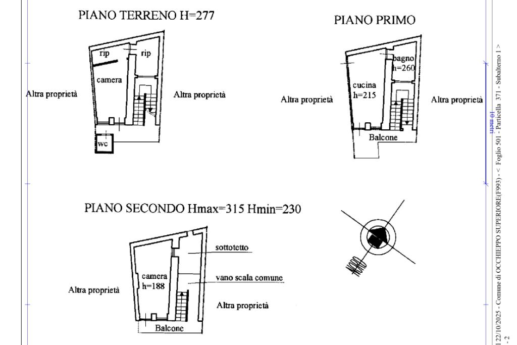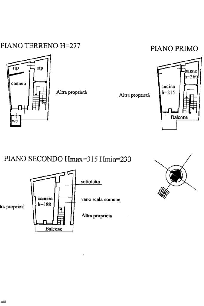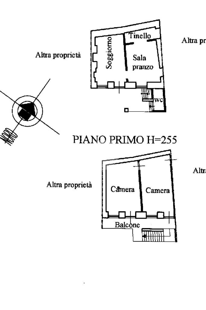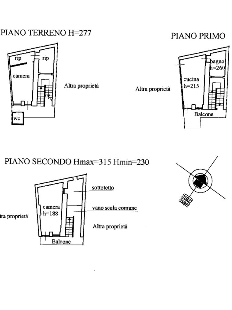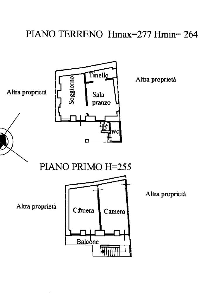 L'immobile è posto su tre livelli: al piano terra soggiorno, sala da pranzo, tinello, camera, due ripostigli e bagno di servizio. Al piano primo, accessibile da scala esterna, cucina, camera, soggiorno, bagno e balcone. Al piano secondo, ampio sottotetto, camera e balcone.