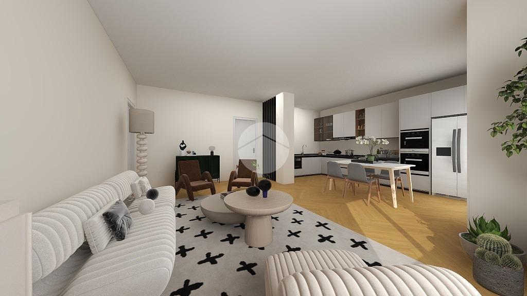 L'immobile è così composto: ingresso su soggiorno, cucina con balcone, corridoio che conduce alla zona notte, formata da due camere da letto matrimoniali, di cui una con balcone, ed un bagno con doccia e vasca.