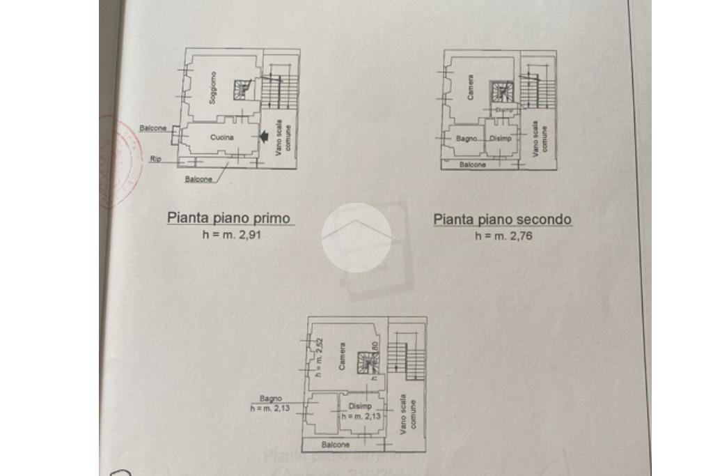 L'immobile è posto su quattro livelli: al piano terra due ripostigli, un magazzino e un bagno di servizio. Al piano primo, raggiungibile da scala esterna, cucina, soggiorno e balcone. Il piano secondo, raggiungibile anche da scala interna, due disimpegni, una camera, un bagno con doccia ed un balcone. Al piano terzo, ampia camera, disimpegno, bagno con doccia e balcone.