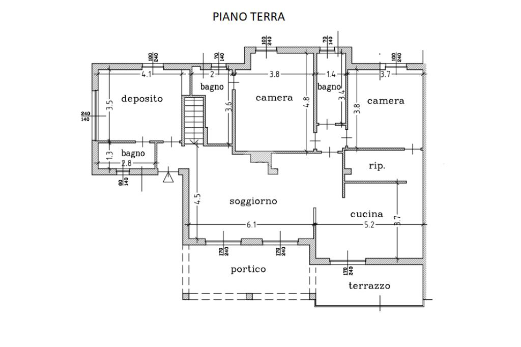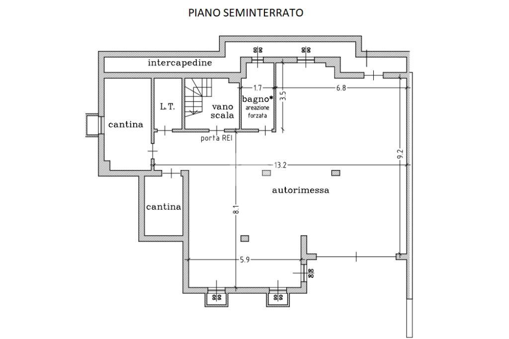 Piano seminterrato: ampia autorimessa, locale tecnico, due cantine e un bagno con doccia.